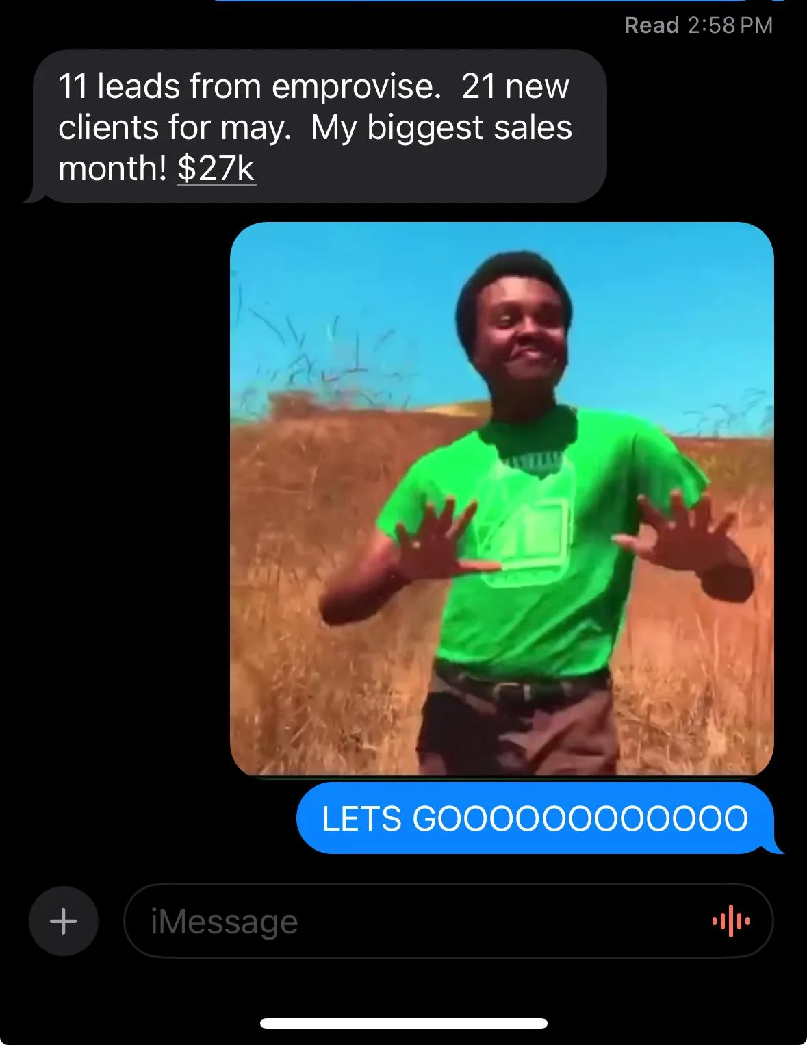 Emprovise media has been one of my smartest investments so far. It has enhanced my business overall by helping me be more organized, getting more leads, looking professional on social media with the marketing tools, as well providing amazing services that I can now facilitate to my current AND future client…ALL while making everything accessible and easy to understand for everyone in ONE place.